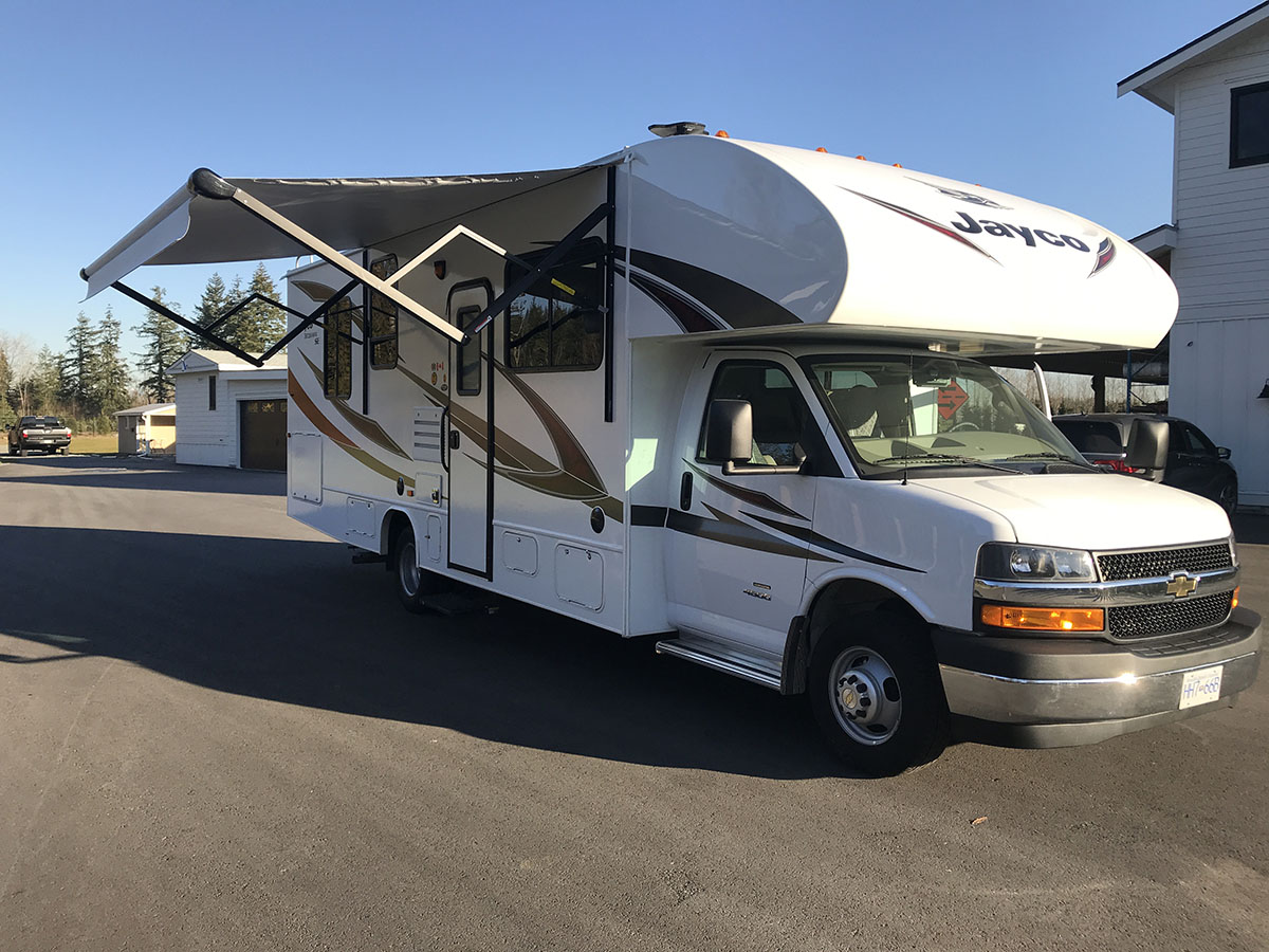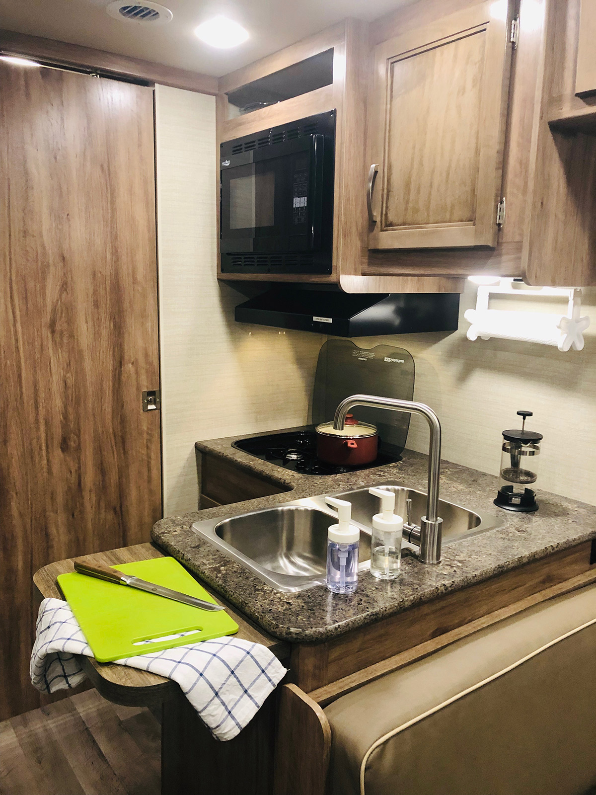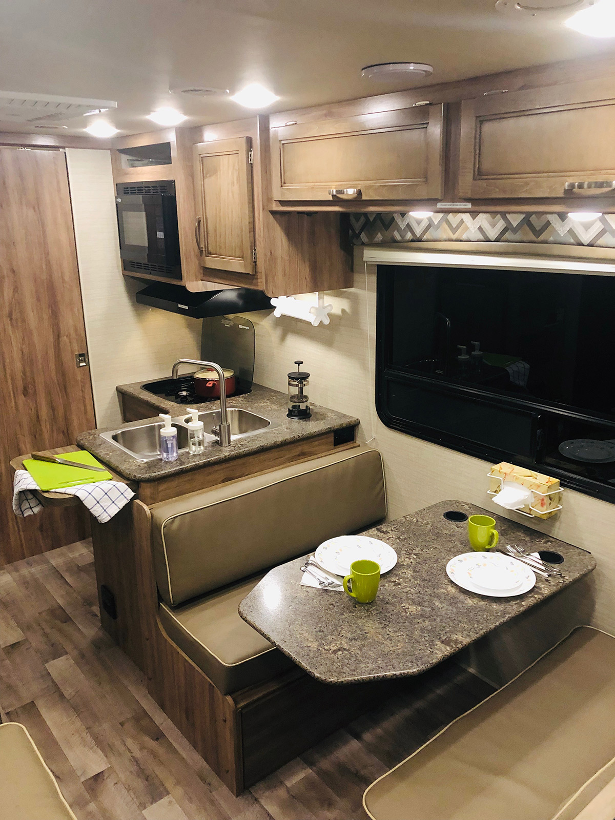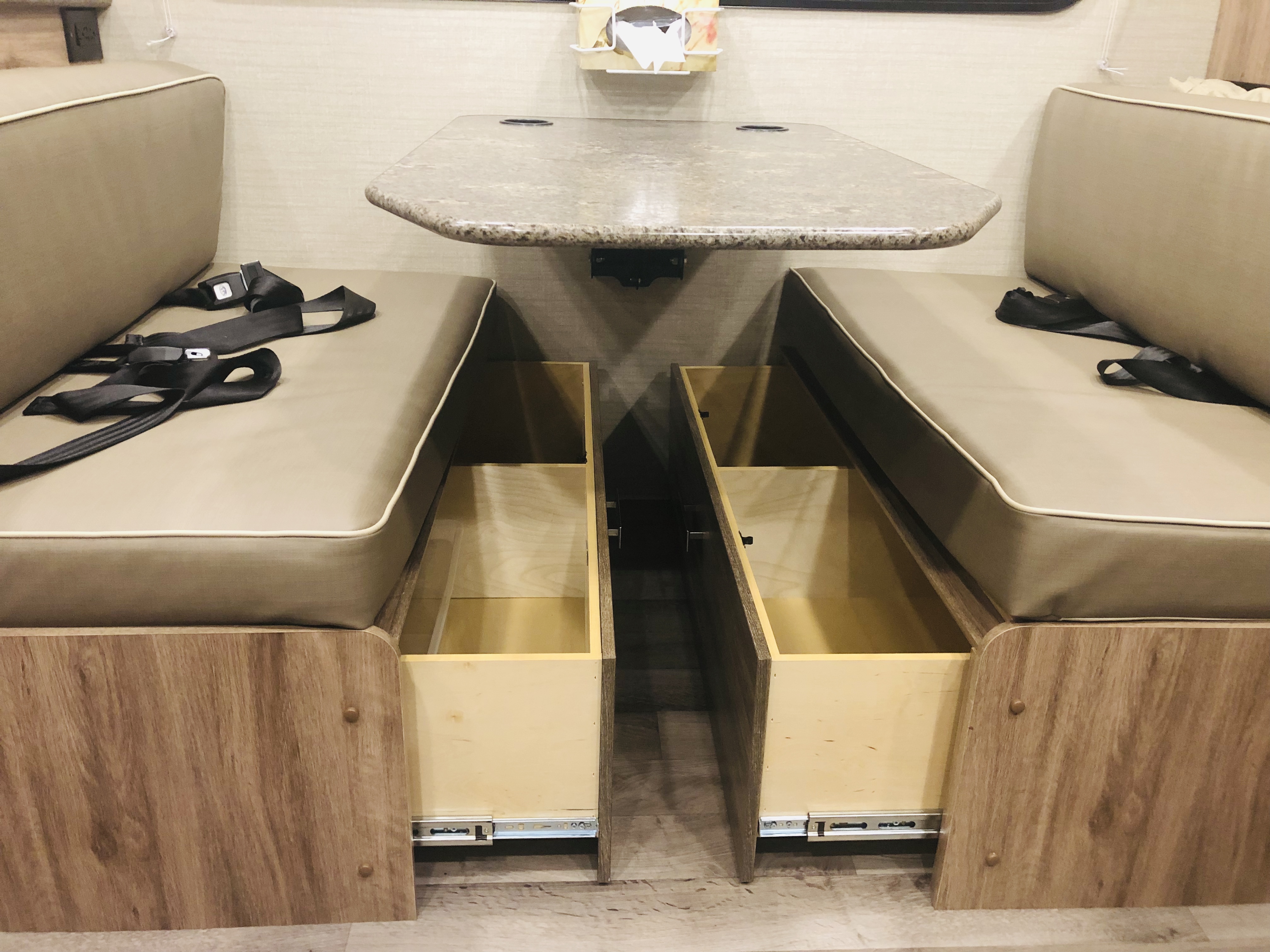 Gallery Front Exterior Exterior Awning Dashboard Fuel Consumption Kitchen Kitchen & Dining Dinette Dinette Storage Interior Storage Interior Storage Range and Convection Microwave 2-Burner Gas Range Kitchen Storage Kitchen Storage Fridge Fridge Interior Complementary Spice Rack Fully-equipped Kitchen Privacy Door to Bedroom Bathroom Shower Complimentary Toiletries Master Bedroom Master Bedroom Storage Sleeping Area Bunk Safety Rail Thermostat Pull-through Storage Pull-through Storage Exterior Storage Exterior Storage